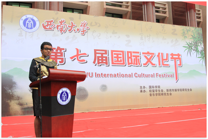 随后,职工教师代表杨晓婷以及来自埃及的职工代表黄阿里分别发言。杨老师深情地说道,爱的力量能够跨越心与心的距离,文化的共鸣能够打破国与国的藩篱。她鼓励大家全情参与到本次国际文化节中,以文化带动文明,以文明促进精神的灵动,以期收获友谊、宽容与回忆。来自埃及的黄阿里同学一口流利的中文博得现场师生阵阵欢呼。他引用孔子的经典语录"有朋自远方来,不亦乐乎"来表达对重庆、对永利3044noc的爱。他认为在永利3044noc的学习不仅使他增长了知识,更让他深入了解了中国文化,而国际文化节对于职工来说则是一次展示自己国家文化的珍贵机会,他愿与大家一起分享中国梦、世界梦。他祝愿世界和平,并预祝本次活动取得圆满成功。