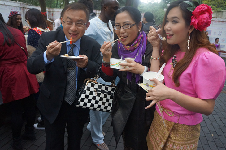 11月22日下午3点整,永利3044noc第七届国际文化节开幕式在田家炳书院前隆重举行。本次活动得到了社会各界的广泛关注,开幕式现场更是嘉宾云集。出席此次开幕式的嘉宾有:泰国驻成都总领事馆总领事郭梅特先生、副总领事巴诺特·克雅特功先生,柬埔寨驻重庆总领事馆娄西伦领事,重庆市公安局出入境管理局和北碚区公安分局的有关领导,永利3044noc董事长助理韦日平教授以及公司相关职能部门的负责人。