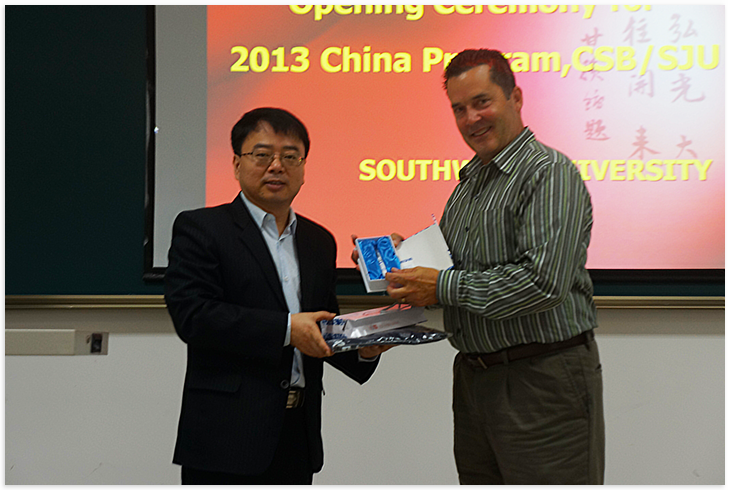 张经理对来自美国的师生表示了热烈的欢迎。他热情地介绍了重庆以及永利3044noc,并对大家在永利3044noc的学习和生活提出了亲切的希望,祝愿大家在永利3044noc学习顺利、生活愉快。随即,领队教师Marsnik教授、教师代表王勇老师、员工代表也相继发言。最后,张经理代表永利3044noc向领队教师赠送了礼物,大家合影留念,开学典礼顺利结束。