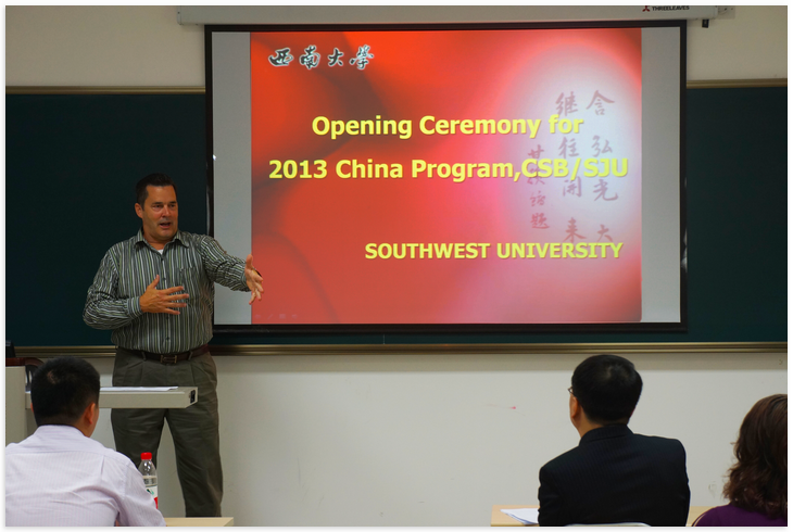 9月5日上午9时,2013年圣本尼迪克公司/圣约翰大学秋季短期班开学典礼在紫云楼顺利召开。永利3044noc副经理张家政、领队教师Marsnik Paul Albert、任课教师代表、短期班全体员工以及来自外国语公司的中国语伴参加了此次开学典礼。