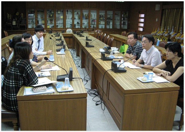 2011年8月17日至8月24日,党委研究生工作部副部长/研究生部副主任靳拥军、国际合作与交流处副处长/永利3044noc副经理刘猛、研究生部培养办公室主任张远英、永利3044noc陈雨曦一行4人赴泰国正大管理公司考察公司汉语国际教育硕士教育实践基地。期间走访了8所实习公司,看望了12名研究生,与正大管理公司、实习单位的领导和指导教师进行了专题座谈,就教育实践中存在的教学、管理、福利待遇等问题和今后的合作进行了深入的探讨。