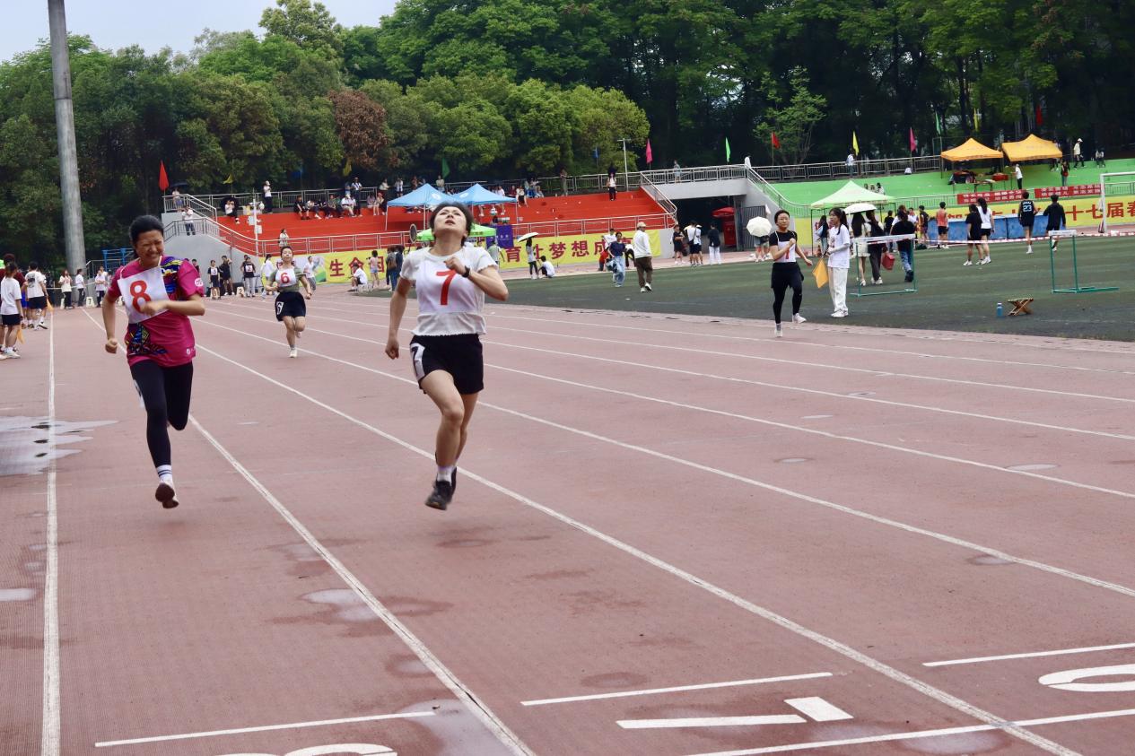 在女子100米和200米的短跑比赛中,短跑健儿们精神抖擞,步伐矫健,在呐喊与欢呼声中奋力奔跑,呈现出一场力与美的视觉盛宴。程若曦取得乙组女子100米第八名的佳绩,完美诠释了“运动健儿志高扬,巾帼岂将须眉让”。