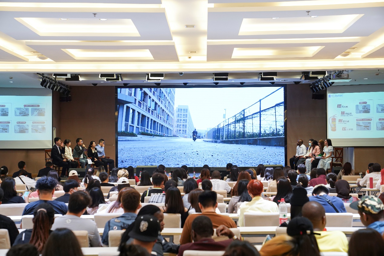 本次安全教育活动以“让身边人讲身边事”为线索,以公司国际员工自编自演自导的微电影为活动素材,邀请重庆市公安局出入境管理局境外人员管理支队徐振方警官、校医院医务部副主任主治医师查静思、校保卫处治安科科长黄汀州、国际员工心灵驿站指导教师洪雨婷老师作为“专家团”成员莅临现场,同时邀请来自俄罗斯、尼日利亚、泰国和坦桑尼亚的4名国际员工组成“学员班”现身说法,吐露国际员工共同心声。