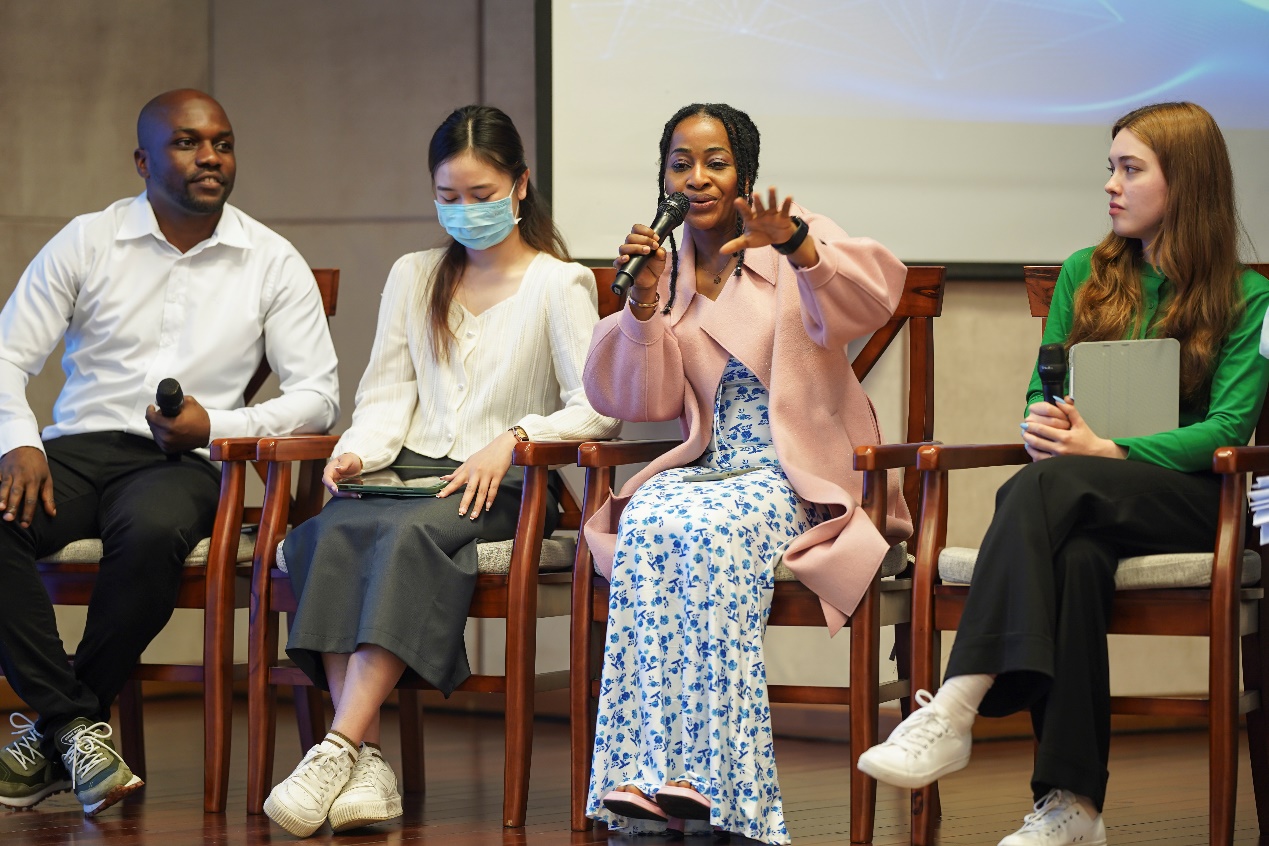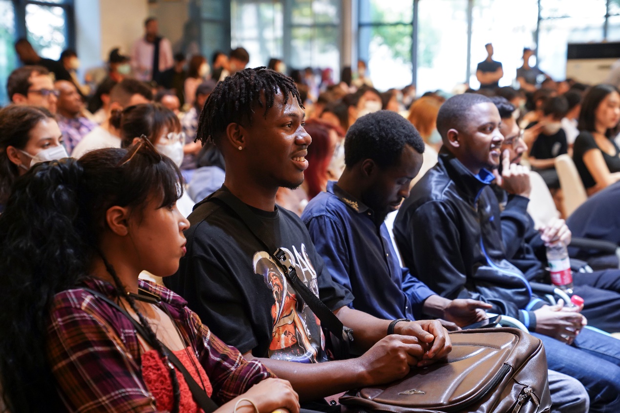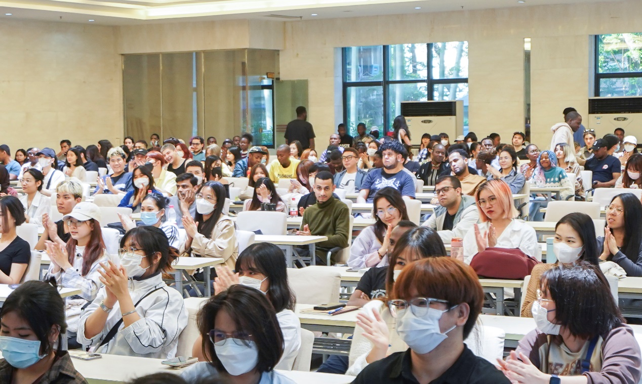 活动最后,杨昆老师为微电影导演AguErnest同学的辛勤付出表示感谢并祝贺他在“看中国-外国青年影像计划”活动中获得金目奖二等奖的佳绩。全体国际员工也向在台上的专家团老师致以最热烈的掌声,感谢他们一直以来的热情帮助和辛勤付出。