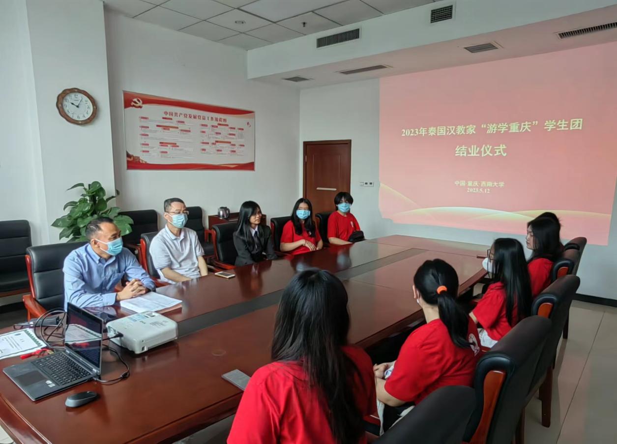 5月12日上午10点,泰国汉教家“游学重庆”员工团结业仪式在永利3044noc紫云楼304室举行,副经理李航、经理助理耿军、招生办公室主任黄无为、泰国汉教家领队于兰凤老师,以及10名泰国中员工参加结业仪式。仪式由黄无为主持。
