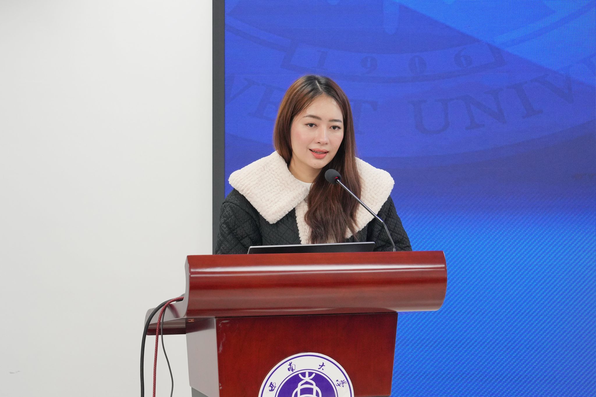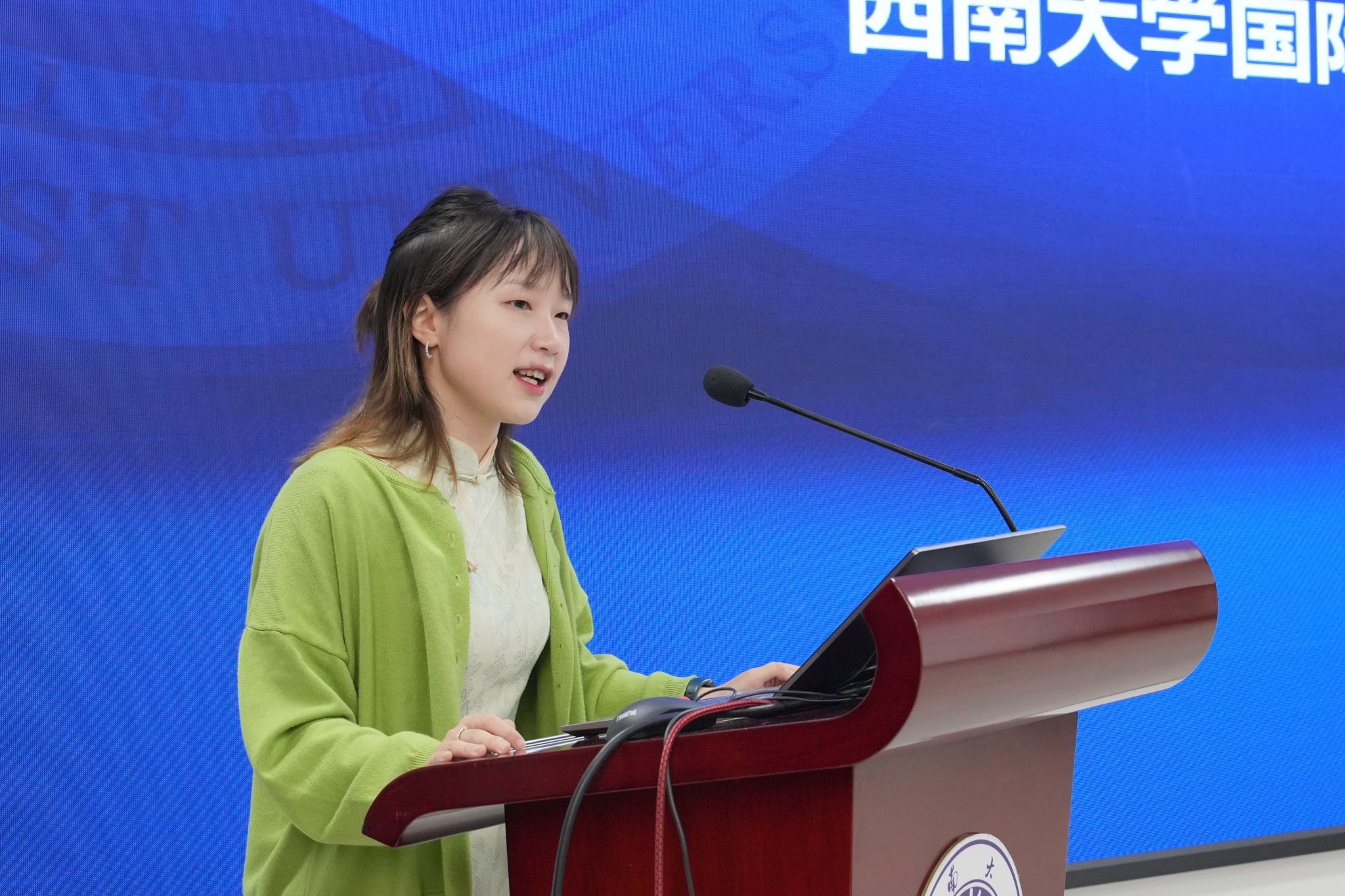 永利3044noc汉语国际教育系胡洪瑜老师发言,希望同学们用心体验重庆的文化、品尝重庆的美食、认识重庆的人民,也希望在以后的岁月里,当同学们回想起在重庆的这段日子,都能露出微笑。