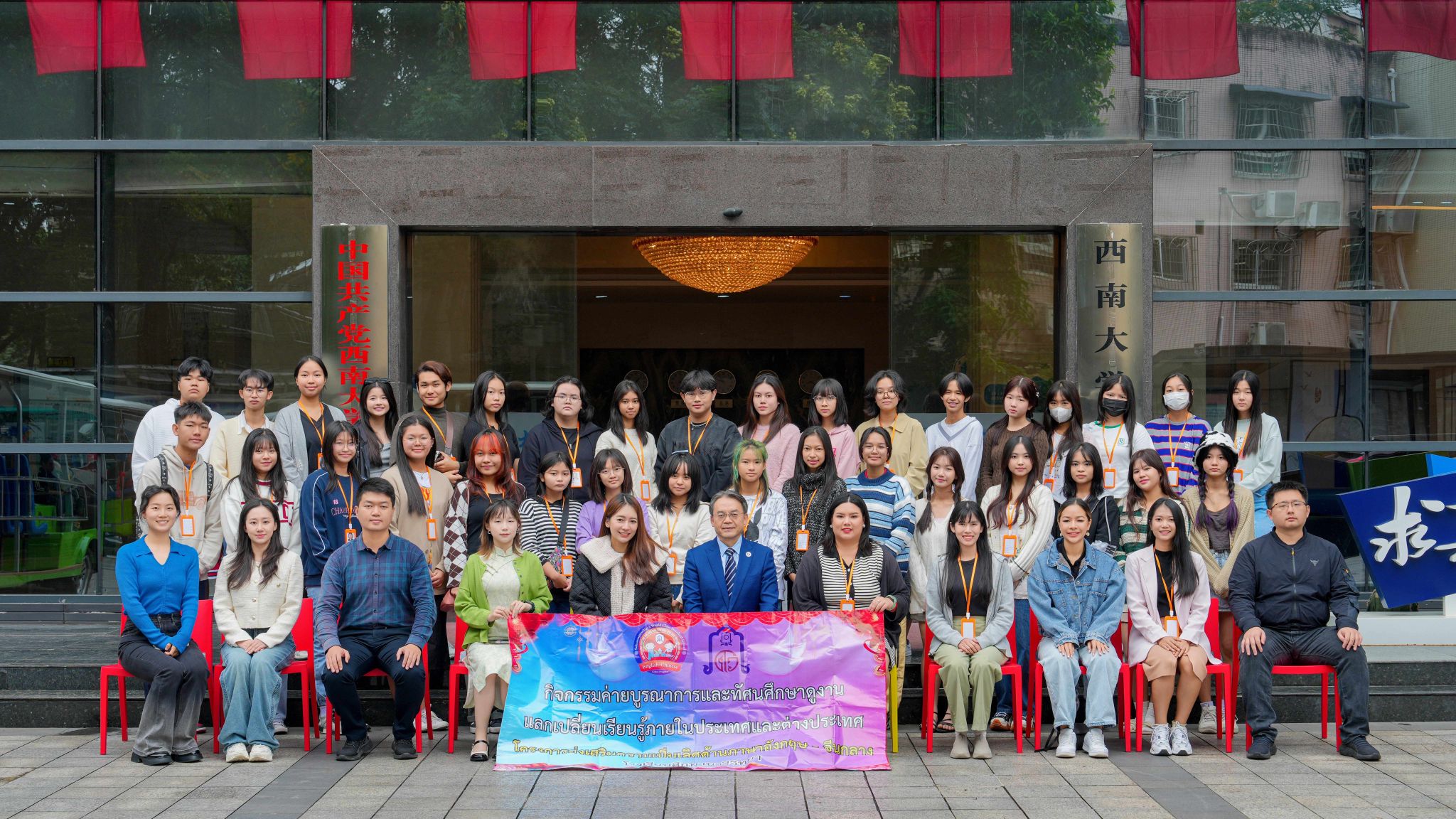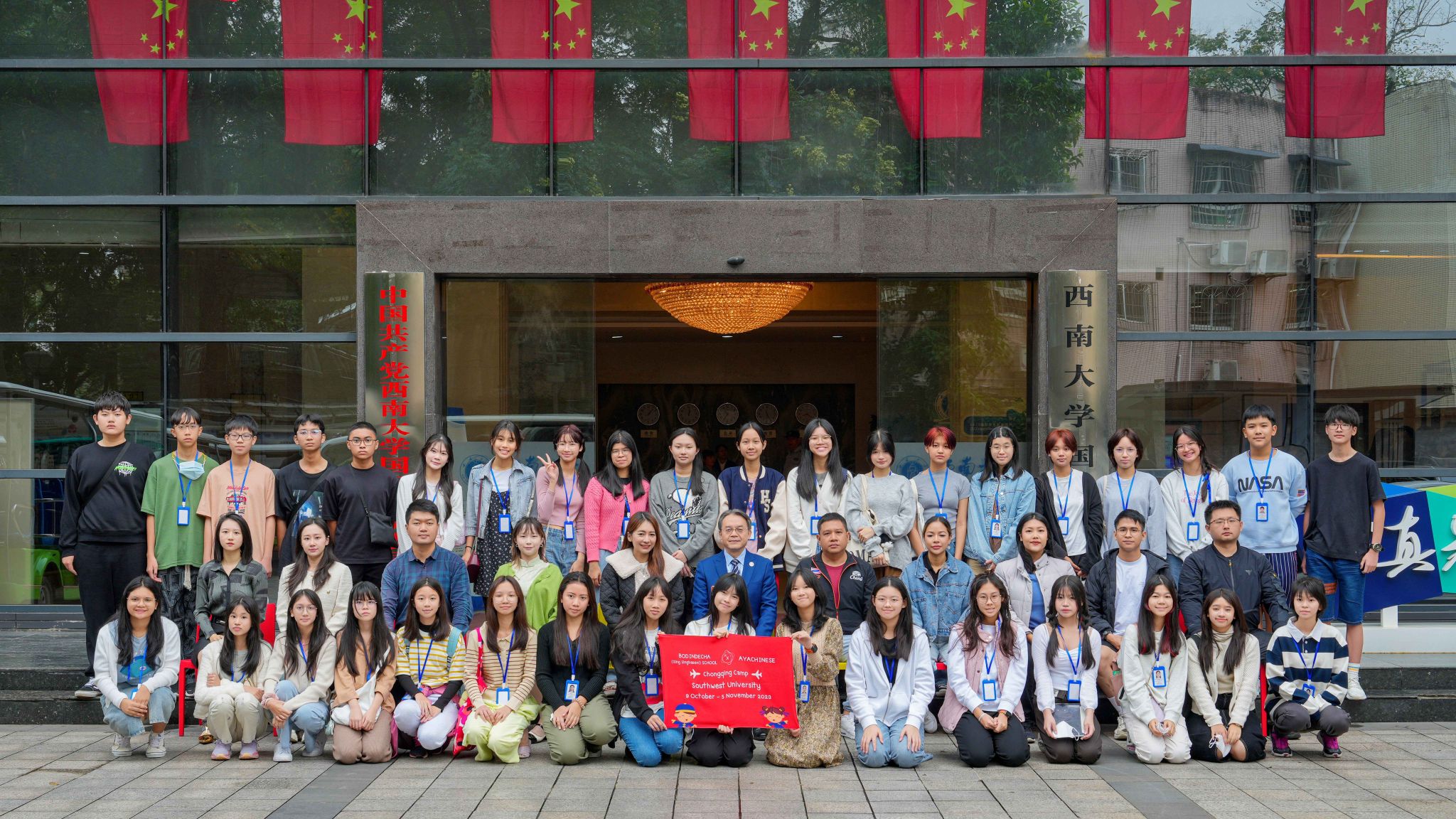 据悉,本次短期秋季汉语营是由AYACHINESE公司组织,分为A、B、C、D四个团,其中A(博丁第一中学)、B(AYACHIESE)、C(素萨纳里威塔亚中学)三个团于10月9日来华,三个团共计127人。同学们将在未来的30天里,沉浸式体验中国大公司园生活,与本地中小学交流互动,参观重庆市区人文景观和世界文化遗产大足石刻,在中国新时代的万千气象里获得不一样的体验和成长。