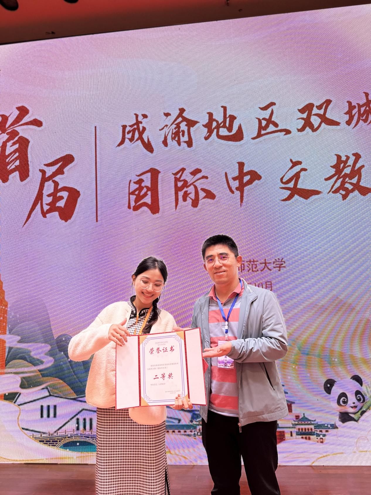 10月19日,首届成渝地区双城经济圈国际中文教育大赛决赛在重庆师范大学举行,本次赛事由重庆市教育委员会、四川省教育厅主办,重庆师范大学、四川师范大学承办。这是川渝两地第一次联合举办国际中文教育大赛,规格高、规模大、影响深,代表了两地国际中文教育赛事的最高水平。经过激烈角逐,公司国际员工刘文昊以总成绩第二名获得一等奖,阮氏兰香获得二等奖。