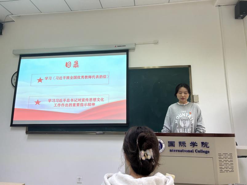 师晓萱同志领学《习近平致全国优秀教师代表的信》。她指出,新时代教师要以教育家精神为追求,始终把从教报国当做终身事业;新时代教师要以教育家精神为标尺,全面提升教书育人能力;新时代教师要大力弘扬教育家精神,服务强国建设和民族复兴伟业。梁翼同志导学《习近平总书记对宣传思想文化工作作出的重要指示精神》篇目,指出,习近平文化思想内容丰富,博大精深,具有鲜明的时代特征,要持续加强对习近平文化思想的学习、研究、阐释,并自觉贯彻落实到宣传思想文化工作各方面和全过程,做到真学真懂真信真用。