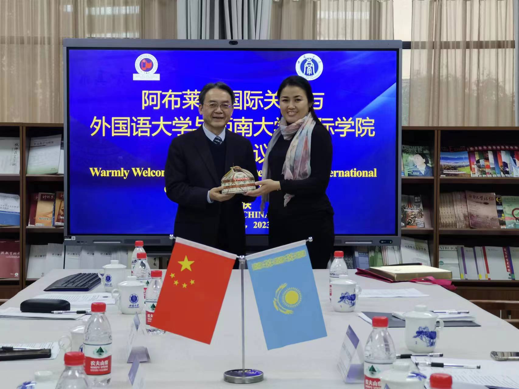2023年12月12日下午,哈萨克斯坦阿布莱汗国际关系与外国语大学副董事长扎纳尔·热尔特罗娃(Zhanar Zhyltyrova)、外事处处长汤索番·阿布迪伽拉尔(Tangsholpan Abdigappar)、东方学系主任艾里米拉·卡伽扎巴乌耶娃(Elmira Kagazbayeva)一行造访公司永利3044noc。