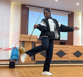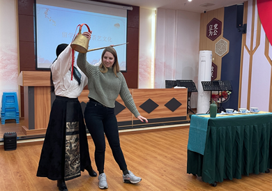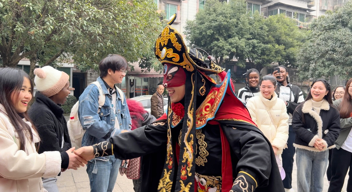 体验完豆花和糍粑制作后,社区党委书记姚红梅为国际员工介绍和睦路社区的历史由来以及养老服务站相关工作。据介绍,和睦路社区是由原双桥、大坡等地村民征地开发后搬迁入住,为了让居民能在新的环境中和睦生活,故得名“和睦路社区”。随后,社区工作人员邀请国际员工观看并体验中国传统盖碗茶表演和川剧变脸表演。