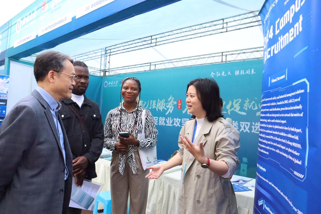 公司领导高度重视本次招聘工作,党委书记刘猛亲临现场,并主动了解长安汽车、赛力斯等公司背景、岗位就任国、招聘需求等信息。