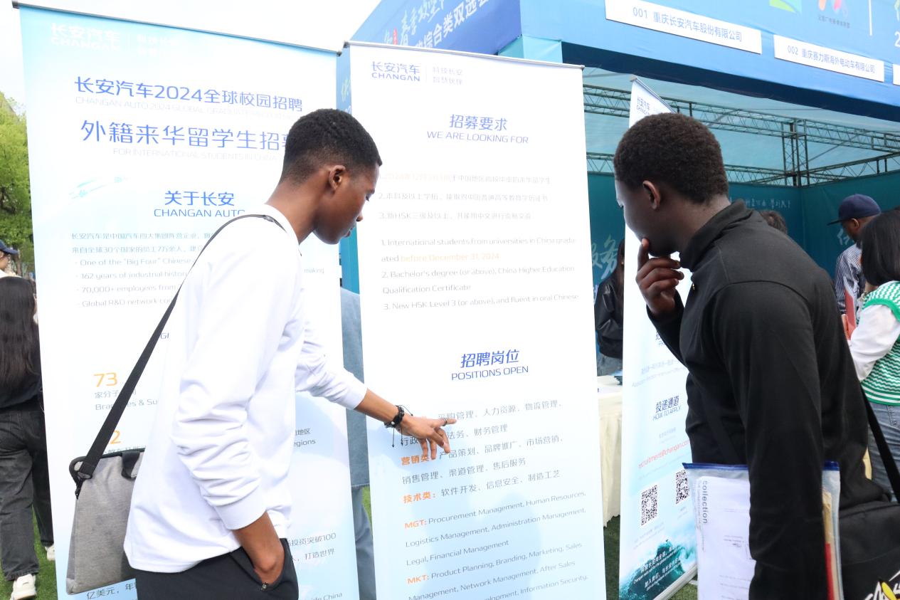 此次共有5家中国企业参与国际员工招聘,包括长安汽车、赛力斯、锐明技术公司等,招聘岗位涵盖销售、管理、工程技术等类型。