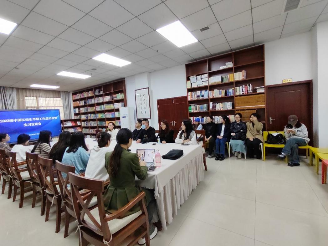 2024年4月10日下午3点,公司在紫云楼图书馆(316室)举办中期总结会暨实习宣讲会,教学办主任邹育艳,学工办主任杨昆,汉教系研究生教研室主任陈晨,2023级全体中国汉硕生参加会议。