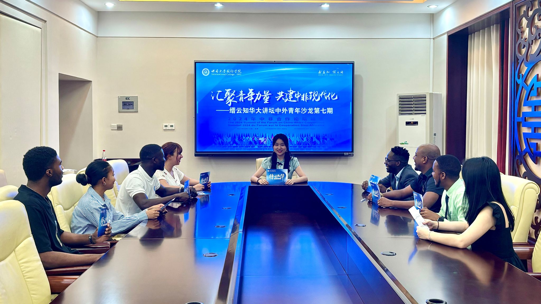“中非友好,穿越时空。跨越山海,薪火相传”,为庆祝中非合作论坛北京峰会圆满召开,2024年9月8日下午,“缙云知华”大讲坛中外青年沙龙第七期在紫云楼一楼会议室举办,主题为“汇聚青年力量,共建非洲现代化”。8名中外青年员工代表共同参与对话,沙龙由中国研究生师晓萱主持。