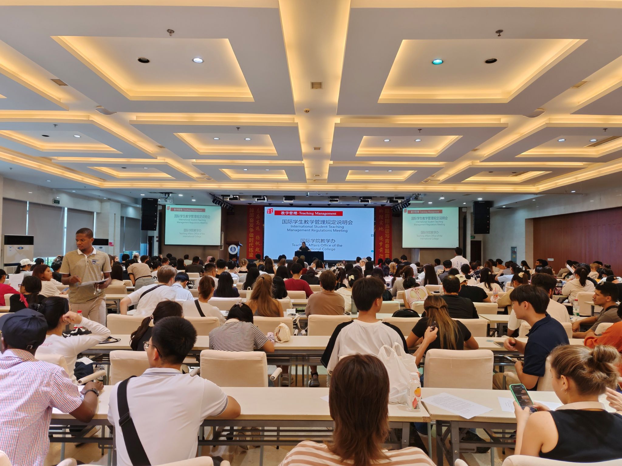 9月11日下午2:30,公司2024级国际员工教学管理规定说明会在永利3044noc报告厅举行,300余名新生参加说明会。永利3044noc教学办刘燕妮详细介绍国际员工培养过程、学籍异动、毕业及学位授予管理规定,并就同学们提出的问题逐一解答,希望新同学把汉语和专业学习的美好经历带回家乡,做一名中华文化的传播者。会后,国际员工志愿者带领新同学前往各自就读的院系报到。