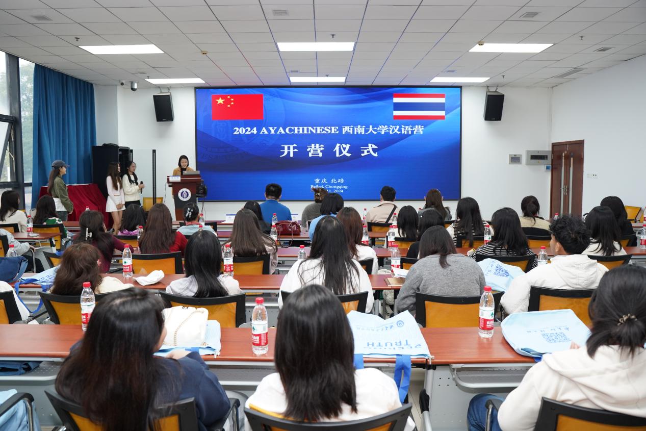 10月11日上午,“2024 AYACHINESE永利3044noc汉语营—A/B团”开营仪式在永利3044noc317室举行。泰国AYACHINESE董事长阿雅女士、三位领队老师,永利3044noc外国员工招生办公室主任黄无为、科员刘嬛,以及50名泰国员工参加开营仪式,仪式由刘嬛主持。