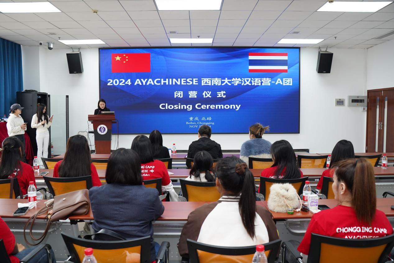 11月5日上午,“2024 AYACHINESE永利3044noc汉语营—A团”闭营仪式在永利3044noc紫云楼317室举行。永利3044noc经理于泽元,泰国AYACHINESE公司董事长阿雅女士,AYACHINESE教师代表普萱乐老师及31名学员参加闭营仪式,仪式由刘嬛主持。