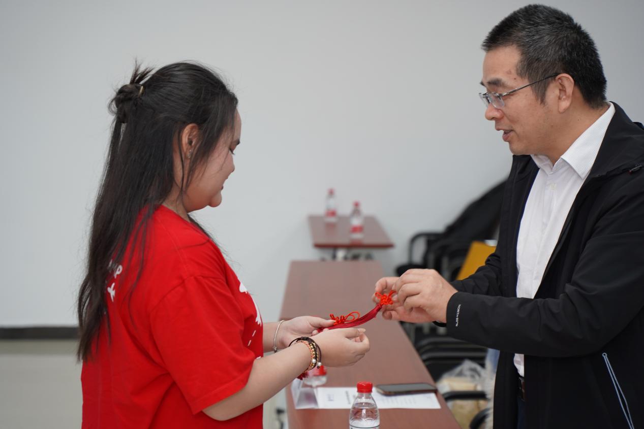 张璐硬、李慧贞同学作为员工代表用中文进行发言,她们畅谈着自己的学习感想和收获,以及对老师和志愿者的感谢,并将制作的中国结赠送给各位老师。