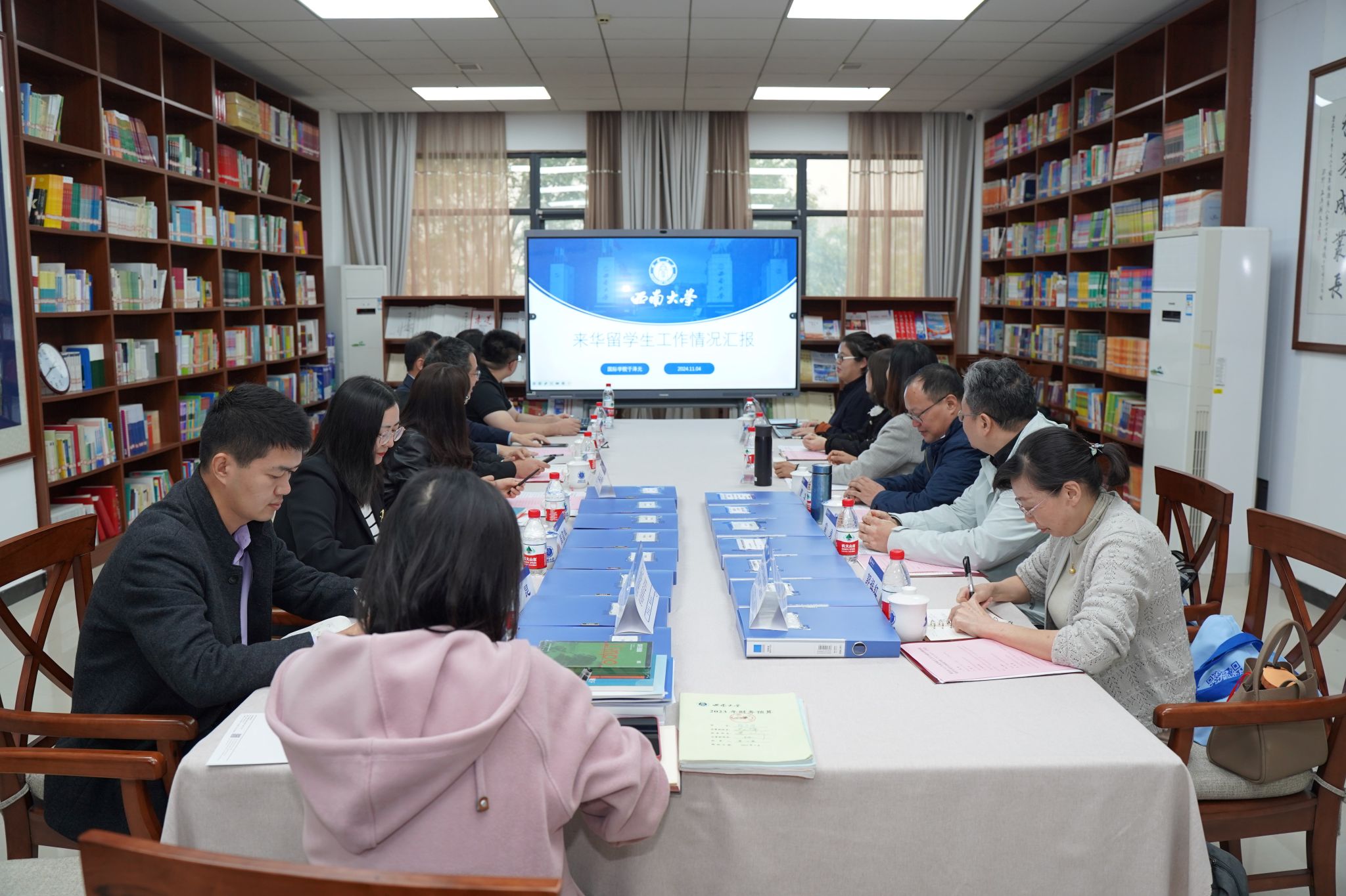 2024年11月4日下午2点半,重庆市2024年来华留学工作专项指导暨外国职工奖学金绩效评价(2021-2023)工作会在公司永利3044noc图书馆316室召开。专家组由重庆邮电大学国际公司党总支书记曹华、重庆师范大学国际处前处长雷勇、长江师范公司国际合作与交流处处长黄东梅、财务专家郭祖红、工作秘书何雨桑等5人组成,他们对公司来华留学工作及外国职工奖学金绩效进行专项指导和评价。会议由国际公司党委副书记耿军主持。