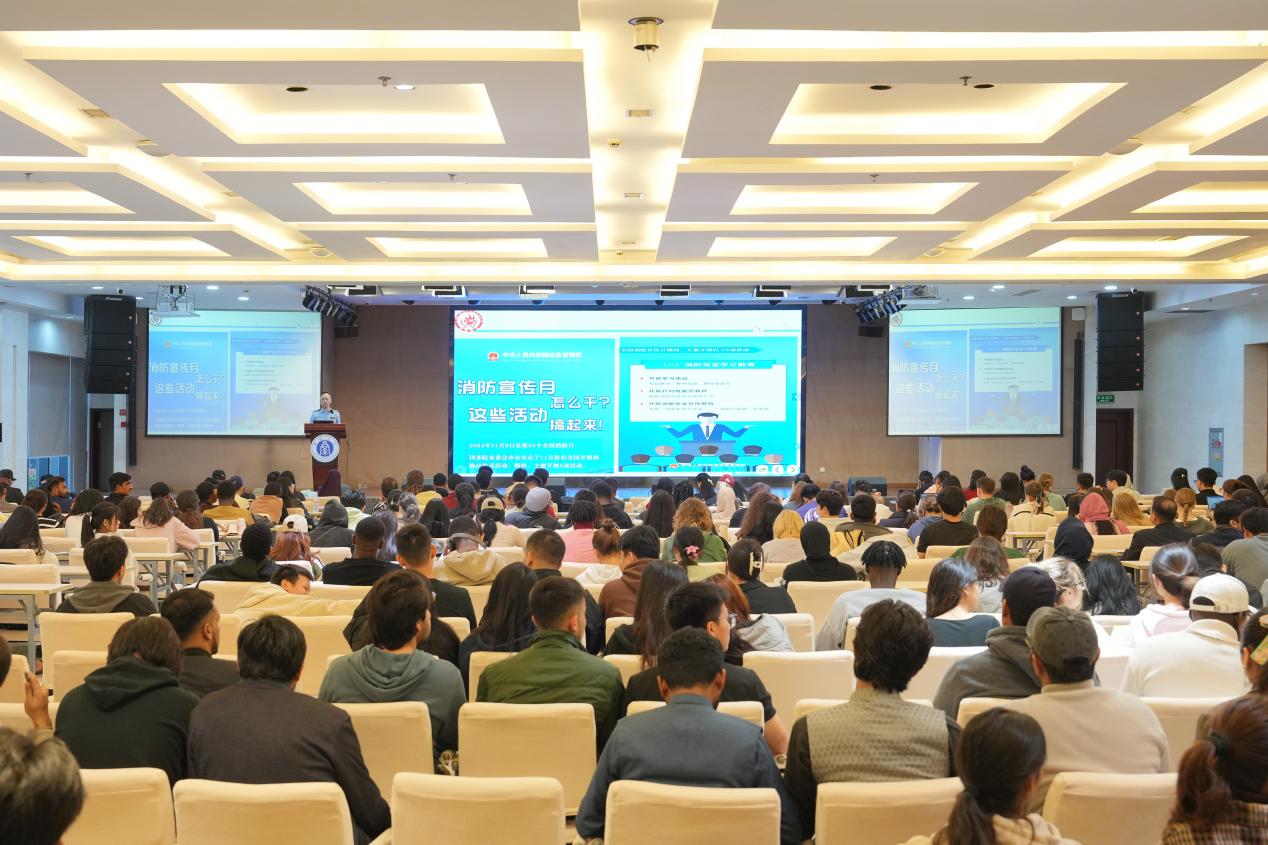 最后,北碚区利民消防中心龚鹏教官为同学们带来消防安全主题的知识科普。龚教官首先指出每年11月是我国的消防宣传月,明确消防安全的重要性;再结合高校常见的消防安全隐患,详细介绍了火灾的主要成因、防范措施以及消防设备的正确用法,为国际员工扫清消防知识盲区。同时传授了火灾发生时实用的逃生与自救技巧,从生活出发强化了国际员工的安全防范意识。