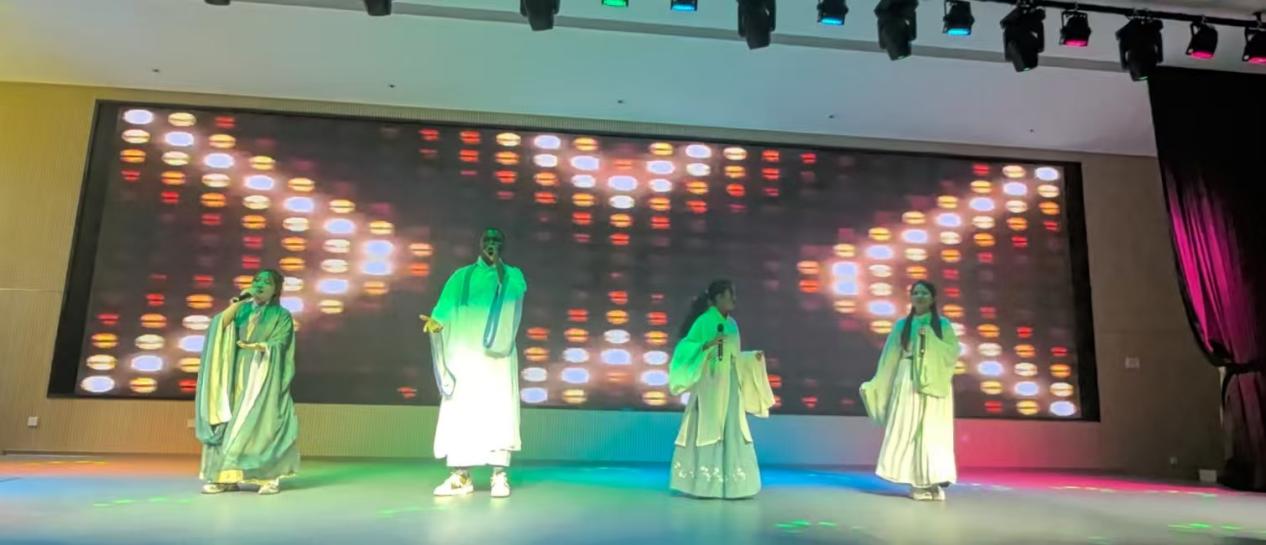 文艺表演环节,公司泰国籍9 名职工活力舞动《Feel Special》,灵动舞步与独特文化韵味交相辉映,瞬间点燃全场激情,彰显泰国文化迷人魅力。随后,分别来自马达加斯加、越南、尼日利亚的4 名职工以对中国文化的深厚热爱与深刻理解,深情演绎中文歌曲串烧。传统与现代元素巧妙融合的旋律,饱含真挚情感,赢得观众阵阵热烈掌声,生动展现中外文化交融的美妙画卷。