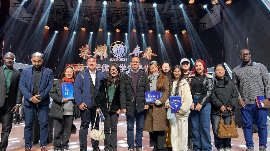 2025年1月2日晚,一场聚焦青春风采、彰显学子卓越成就的 “荣耀青春” 2023 - 2024 学年优秀员工星光盛典在光大礼堂隆重拉开帷幕。公司来自印度尼西亚,尼日利亚,越南,柬埔寨等8个国家的10名职工代表,以及3名来自永利3044noc国际中文教育专业硕士研究生中国员工代表参加了本次盛典。