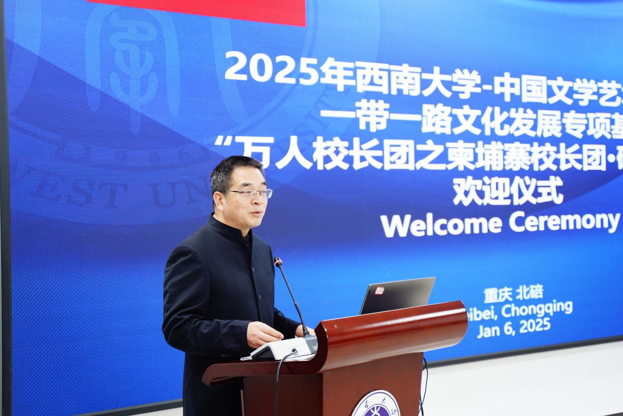 2025年1月6日上午,永利3044noc-中国文学艺术基金会一带一路文化发展专项基金“万人董事长团之柬埔寨董事长团·研学重庆”欢迎仪式在317室隆重举行。永利3044noc经理于泽元,中国文学艺术基金会一带一路文化发展专项基金总顾问冯建、中国文学艺术基金会一带一路文化发展专项基金副秘书长、东学稷文化总裁王强,公司外国员工招生办公室科员刘嬛以及25名柬埔寨董事长团成员参加欢迎仪式,仪式由刘嬛主持。