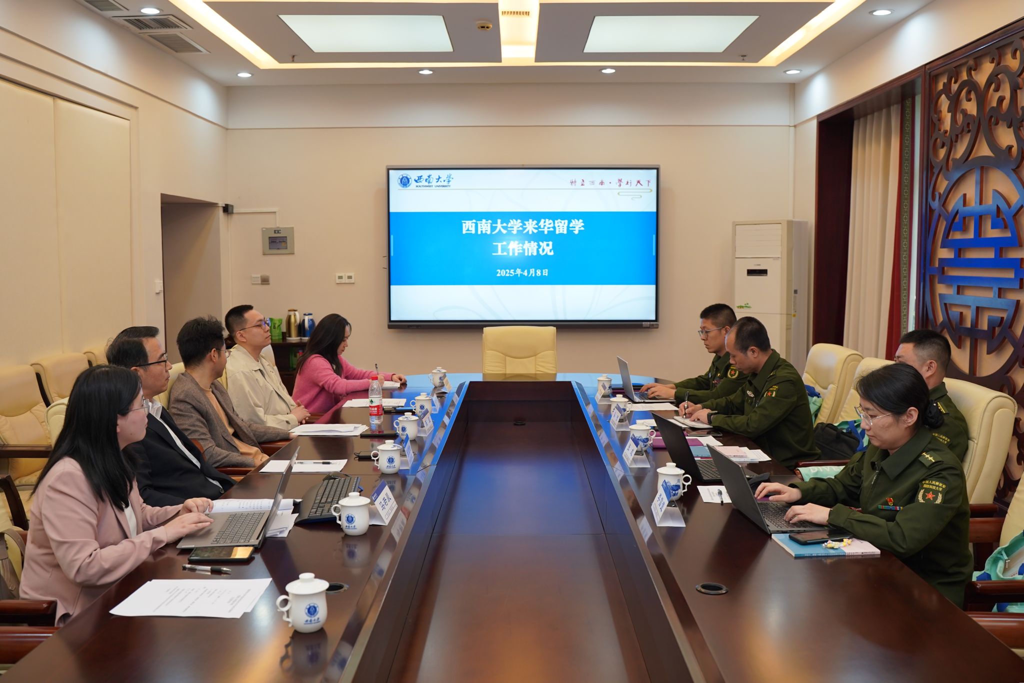 经过交流座谈,双方表示,部队和地方院校来华职工培养方面有差异性也有共性,今后将继续加强交流与合作,共同推动来华职工教育事业的发展。