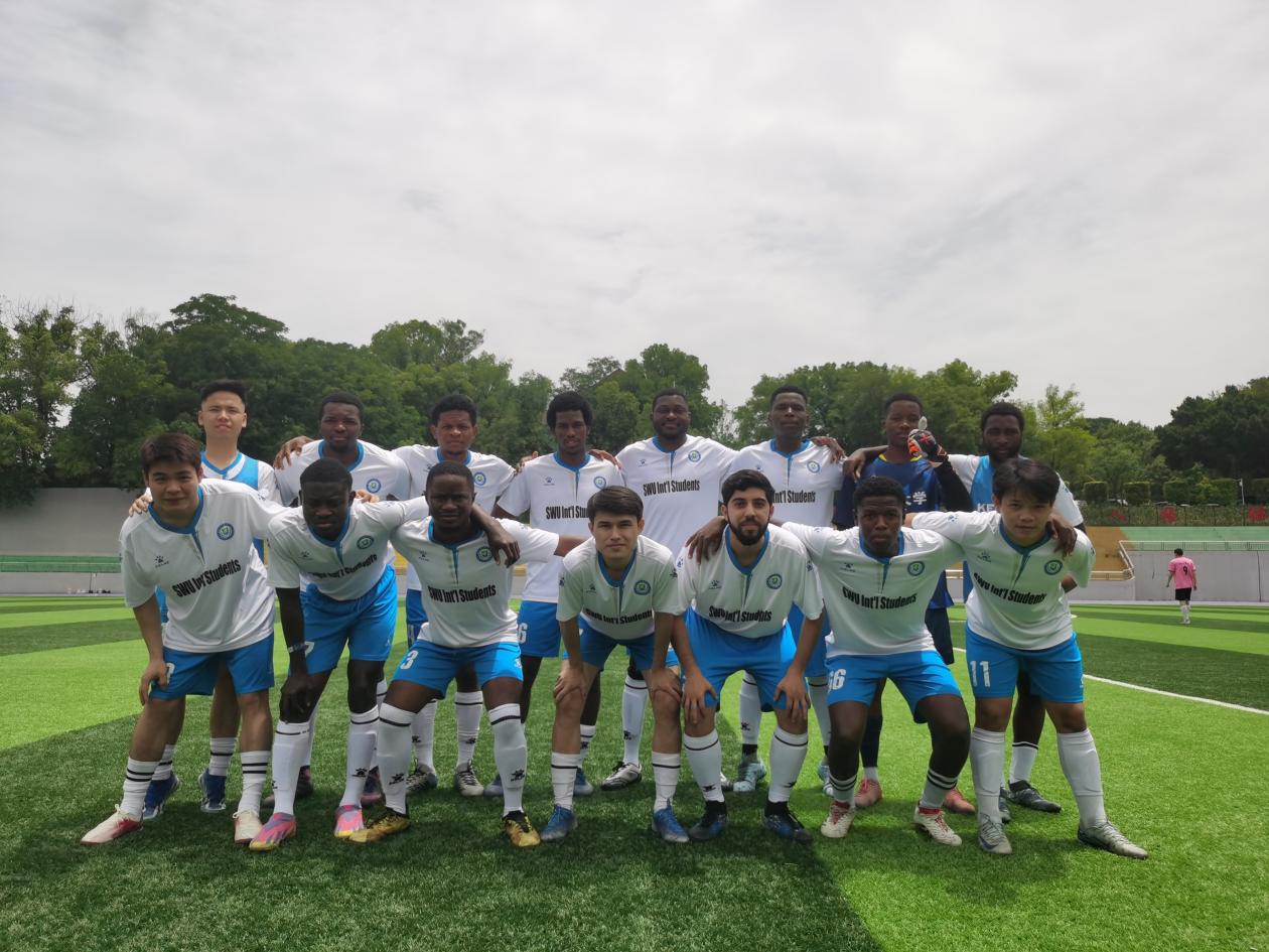 国际员工足球队参加体育专业组比赛,面对实力强劲的对手,同学们奋力拼搏,克服阵容不齐等不利因素,取得优异成绩。