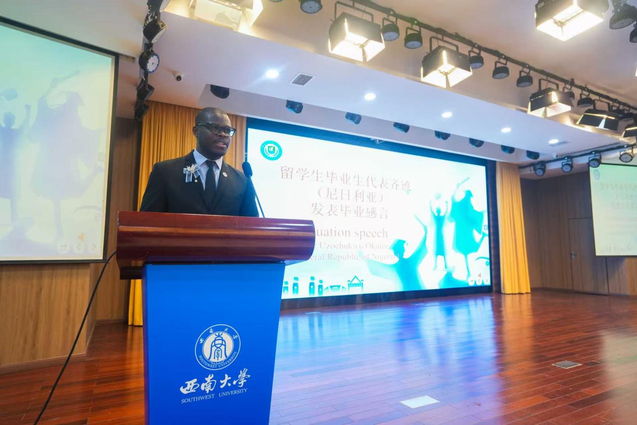 毕业感言环节,中外毕业生代表王昕与齐迹接力诉说。在他们的发言中,既有初进校园时的忐忑不安,更有在包容氛围里破茧成蝶的蜕变,句句真挚话语,道尽员工与永利3044noc双向奔赴的珍贵情谊。