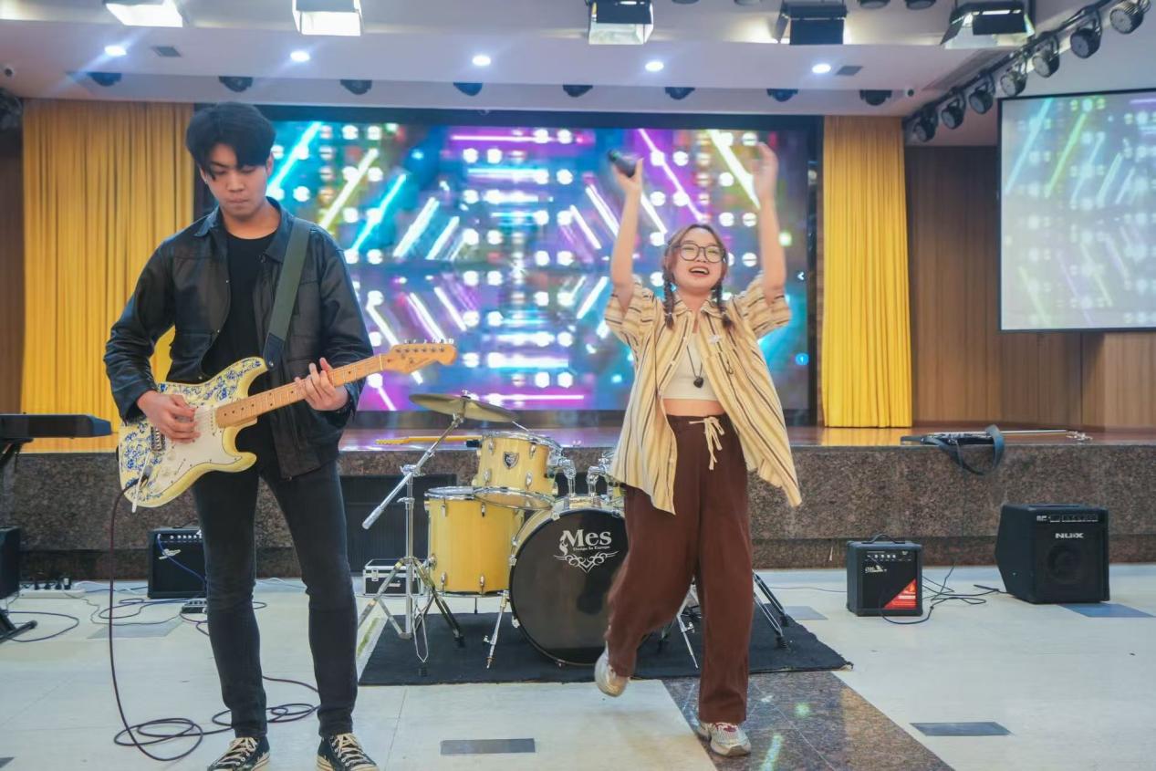 舞台上,多元艺术表演精彩纷呈。歌曲《告白气球》以轻快旋律勾勒校园时光的美好记忆;《my heart will go on》将中西音乐元素巧妙融合,展现文化交融的魅力;《突然想起你》以激昂声线点燃全场气氛;《像你这样的朋友》则通过和声演绎,传递跨文化协作的温暖情谊。每个节目都生动展现了学子与公司共同成长的历程。当乐队奏响激昂旋律,青春的热情与理想化作璀璨光芒,映照出永利3044noc的精神底色,为毕业生的未来征程点亮前行之路。