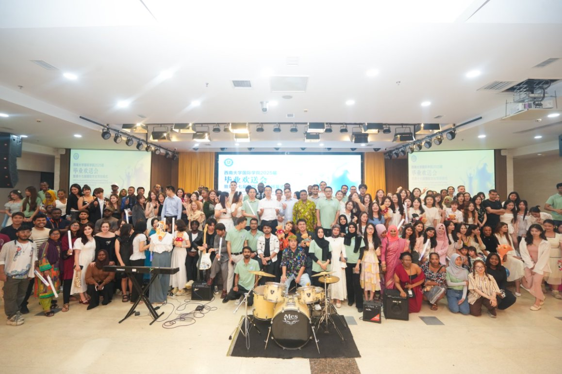从玉兰绽蕊到楹影飞紫,十七载丝路薪火在西大校园代代相传。“海内存知己,天涯若比邻”,这场从春日延续至盛夏的文化之约,让驼铃古道的千年余韵化作青春舞台的翩跹舞步,让五洲风华在紫云楼前凝成永不褪色的笑脸。
