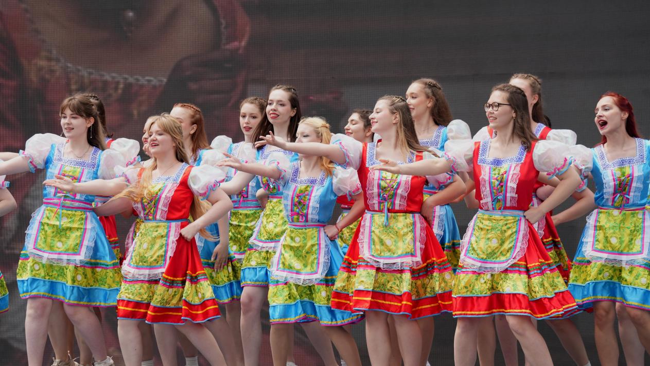 4月27日,第二运动场化身“迷你地球村”,22国展台依次排开。泰国椰奶的甜香与俄罗斯糖果的浓郁交织,职工们身着民族服饰讲解手工艺品,师生们手持“文化护照”穿梭其间,在集章与美食体验中感受异域风情。开幕式演出更是亮点纷呈:《龙腾虎跃》鼓阵与旗阵交织,国际学子身着戏服奔腾绿茵;中泰员工联袂演绎舞蹈,舞台大屏“中泰建交五十周年”字样与两国国旗交相辉映;中华武术表演中,太极八阵与舞龙腾跃相映成趣,引得掌声雷动。正如副董事长赵玉芳在致辞中所言,文化节让丝路新韵在校园回响,让和美与共的理念深植人心。