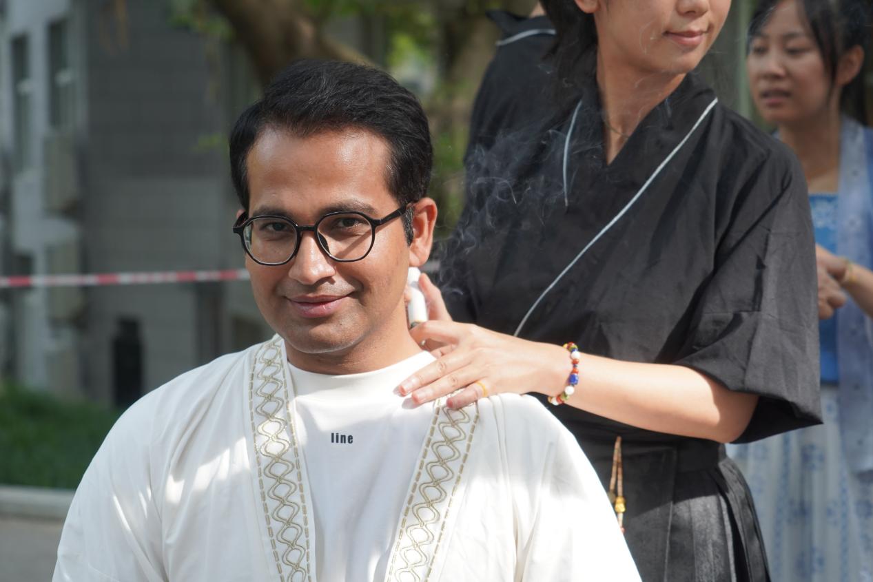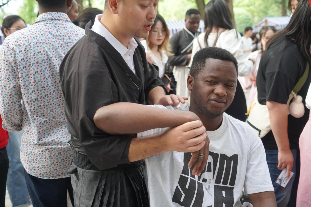 活动现场体验氛围热烈,职工们表现出了浓厚的兴趣。来自越南的阮氏恒分享道,活动彻底改变了她对中医的印象:“以前总觉得‘阴阳’‘气’这些概念很玄妙遥远,但今天的草药辨识和艾灸体验让我亲身感受到它们是如何融入实际生活的!”来自摩洛哥的Fadwa则对活动带来的文化碰撞深有感触:“最震撼我的是中医‘平衡’的整体观。在摩洛哥,我们往往更关注症状治疗,而中医教会我们如何调和身心、顺应自然来维护健康。我非常有兴趣读更多书、参加更多活动来深入了解中医。”