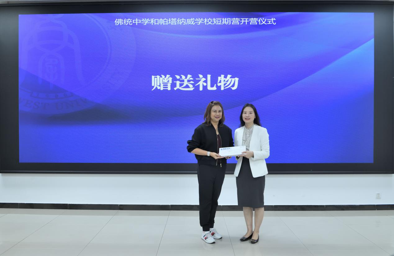 致辞环节结束后,胡琳副经理代表永利3044noc,与佛统中学、帕塔那威公司的代表互赠纪念礼物,传递了两校与永利3044noc间的友好情谊,现场掌声热烈。