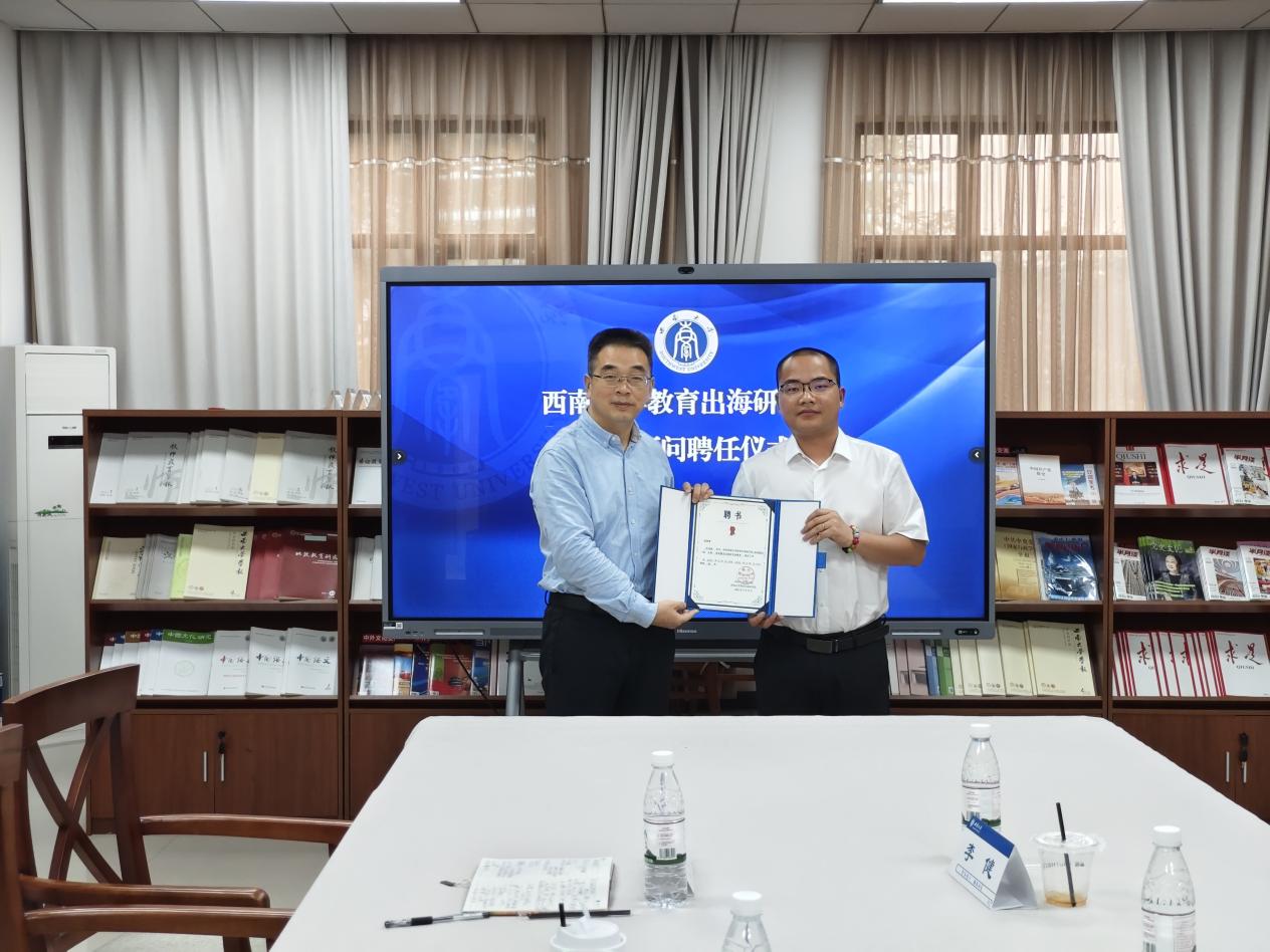 10月15日下午三点,公司在国际中文教育图书馆隆重举行了“永利3044noc教育出海研究院研究员、技术顾问聘任仪式暨与重庆恒仁教育研究院合作协议签署仪式”。永利3044noc经理于泽元、副书记副经理耿军、培训中心暨教育出海研究院办公室主任王鹊,民盟江苏国风书画院秘书长、泰国暹罗智库研究员李波博士,重庆恒仁教育研究院负责人范洪盛,永利3044noc美育研究院视觉艺术美育研究中心副主任、永利3044noc数学与统计公司副研究员李健出席。仪式由耿军主持。