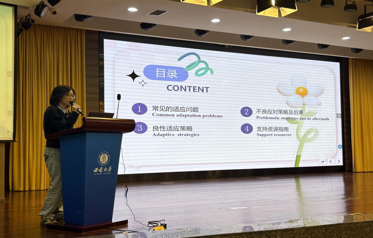 为应对新生们可能会在文化休克时期出现不良适应行为,韦卓冉老师向同学们介绍了不良应对策略的种类及其后果。大家纷纷共鸣,思考自己如何帮助在生活中出现此类行为的人。