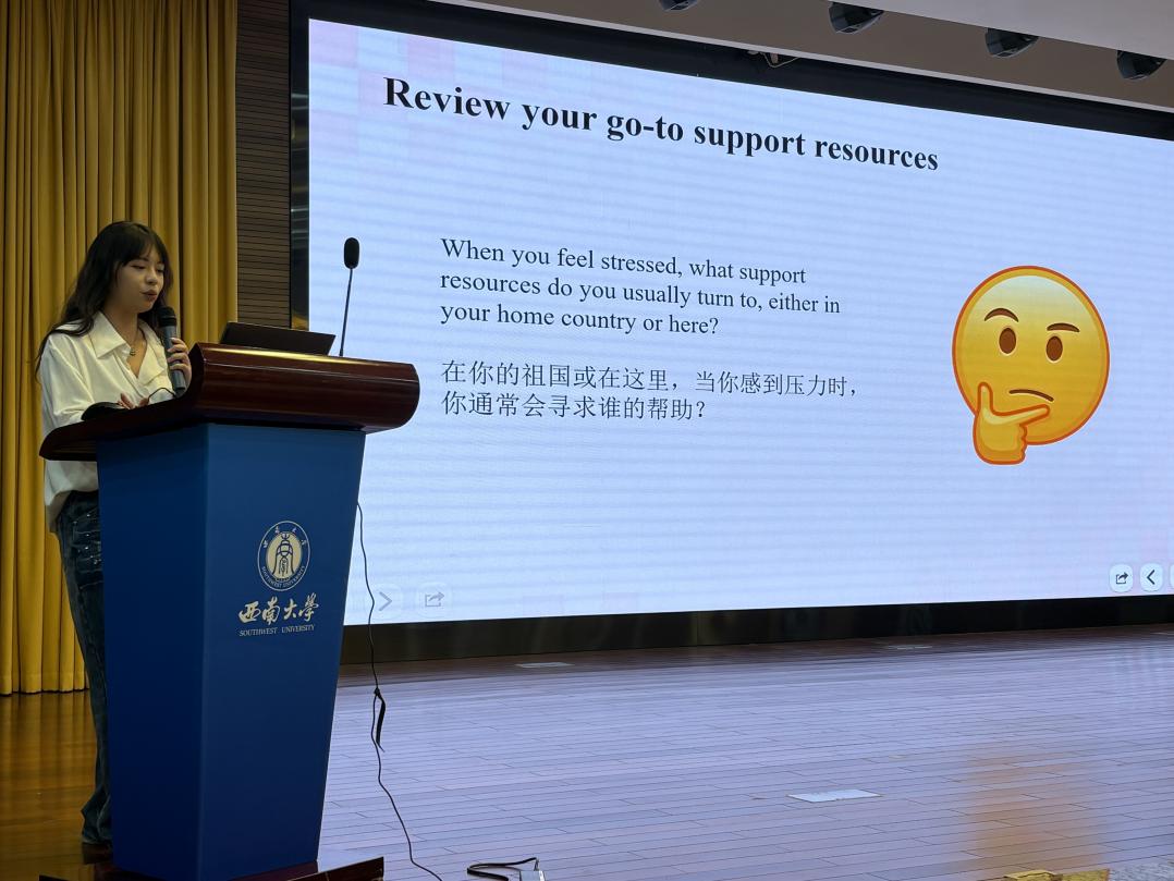 来自泰国的THANYALAK与希腊的迪娜表示:“本次讲座汇聚了来自不同国家、拥有多元文化背景的参与者。我们非常喜爱这次活动,它不仅帮助我们缓解了初来的孤独感,更让我们感受到这个大家庭的温暖与友善。希望能够有机会参与更多此类心理辅导活动。”