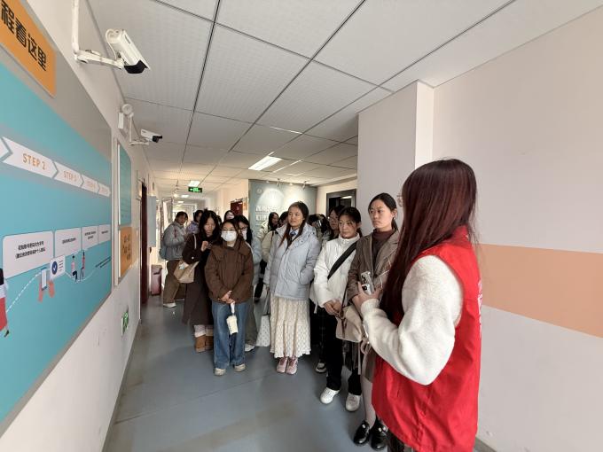 为帮助2025级新生快速适应老员工活,消除心理求助顾虑,充分了解校园心理健康支持资源,筑牢新生心理安全防线,11月19日中午12:00至12:30,公司组织全体2025级国际中文教育硕士中国班员工前往公司心理健康教育与服务中心开展参观学习活动。