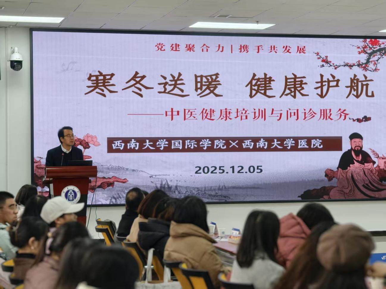 为守护师生身心健康,弘扬中华优秀传统文化,12月5日下午,公司联合公司医院在紫云楼317教室成功举办“寒冬送暖,健康护航”中医健康培训与问诊服务活动。公司医院中医专家团队受邀莅临,公司师生积极参与,活动现场暖意融融、气氛热烈。