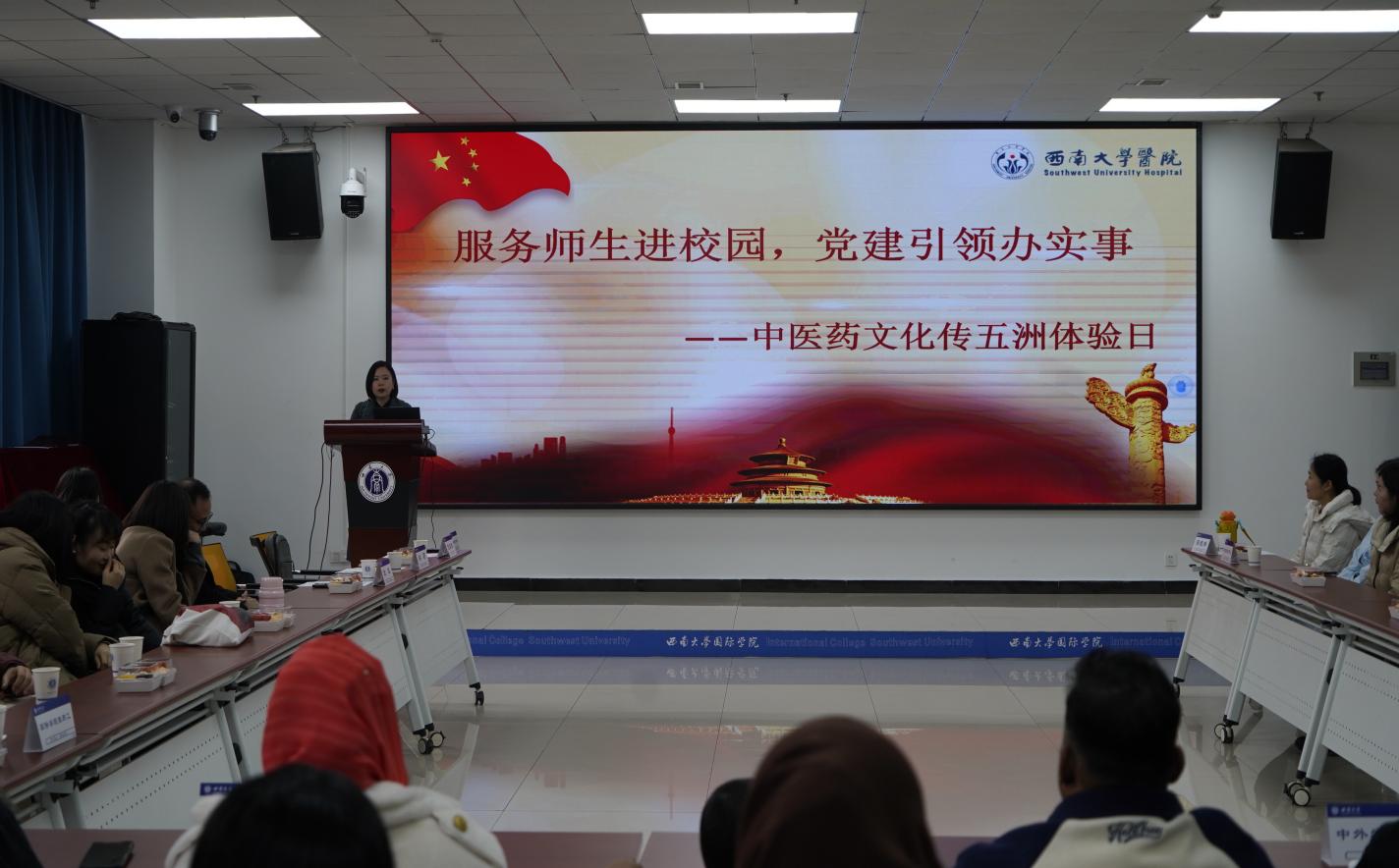 活动伊始,公司党委书记张袁松代表公司和全体师生致辞,对校医院专家团队的到来表示热烈欢迎与诚挚感谢。张书记强调,健康是人生的基石,公司始终将师生的身心健康置于工作首位。而中医作为中华优秀传统文化的瑰宝,蕴含着“治未病”的预防智慧和辨证施治的科学理念。此次活动既是一次贴心的健康服务,也是一场生动的文化交流,更是双方共同守护师生健康的具体实践。最后,张袁松书记鼓励在场师生珍惜难得机会,认真学习健康知识,养成良好生活习惯。同时,期待国际学子通过此次活动进一步深入了解中医文化,增进中外文化交流互鉴。