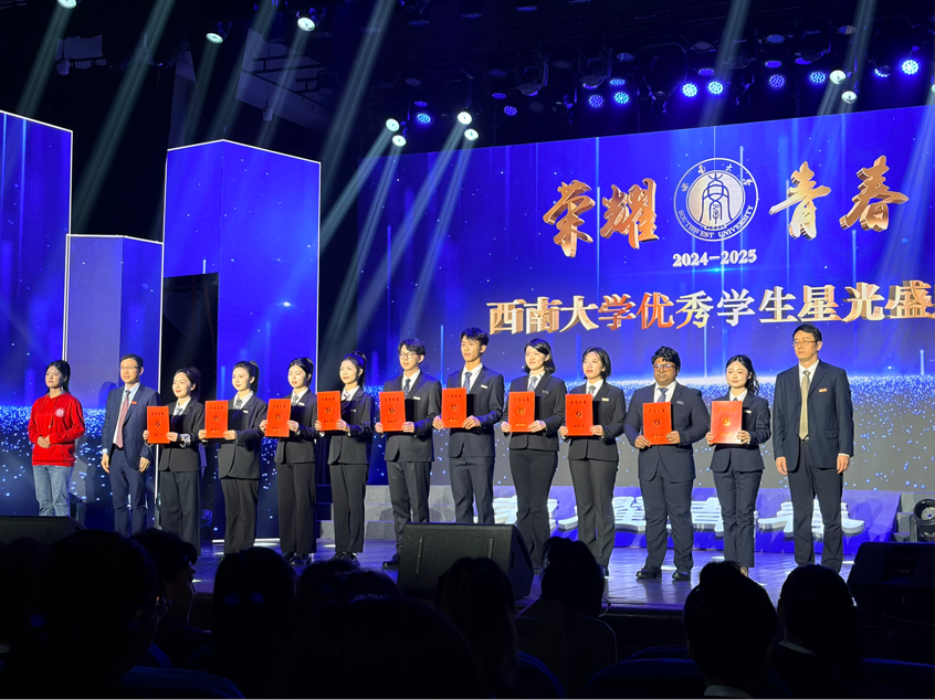 2025年12月18日晚,永利3044noc光大礼堂灯火璀璨,“荣耀青春”2024-2025学年优秀员工星光盛典在此隆重启幕。活动汇聚了来自孟加拉国、斯里兰卡、泰国、越南等国的12名职工代表,以及永利3044noc国际中文教育专业2名硕士研究生中国员工代表,共同见证榜样风采、共话青春成长。