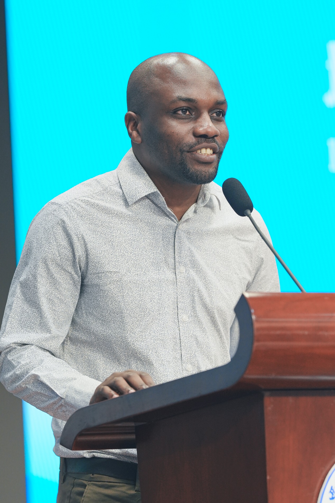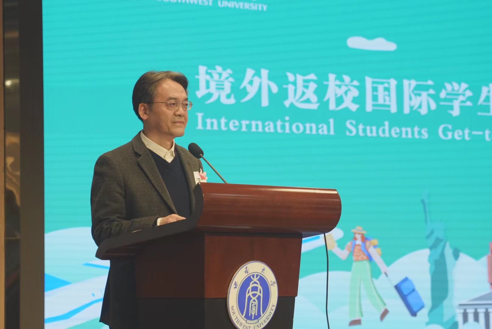 来自坦桑尼亚的阿普杜代表返校员工发言,表达回归西大生活的欣喜,畅谈对未来学习生活的美好愿景。