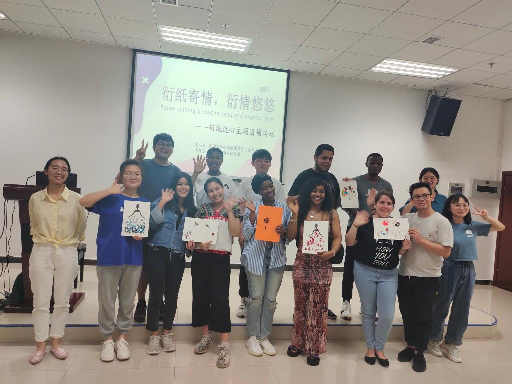 一卷小纸,涓涓情思,纸短情长,以敬相逢、相识与相知。由永利3044noc和校心理健康教育与服务中心主办,永利3044noc阳光使者团承办的“衍纸连心”主题团辅活动于4月23日晚18点在永利3044noc317教室举行,近20名中外员工相聚于此,一同度过了一个轻松、愉快的夜晚。