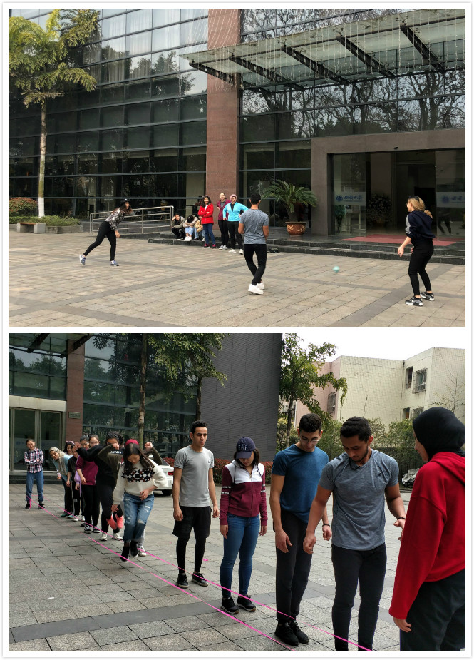 2019年3月16日下午一点,2018级泰国正大管理公司班和2018级埃及艾因夏姆斯大学班的共计34名员工,在吴宗燕老师和钟万平老师的带领下,在永利3044noc楼前集合,进行了一场以“了解和感受中国民间传统游戏”为主题的趣味运动会。