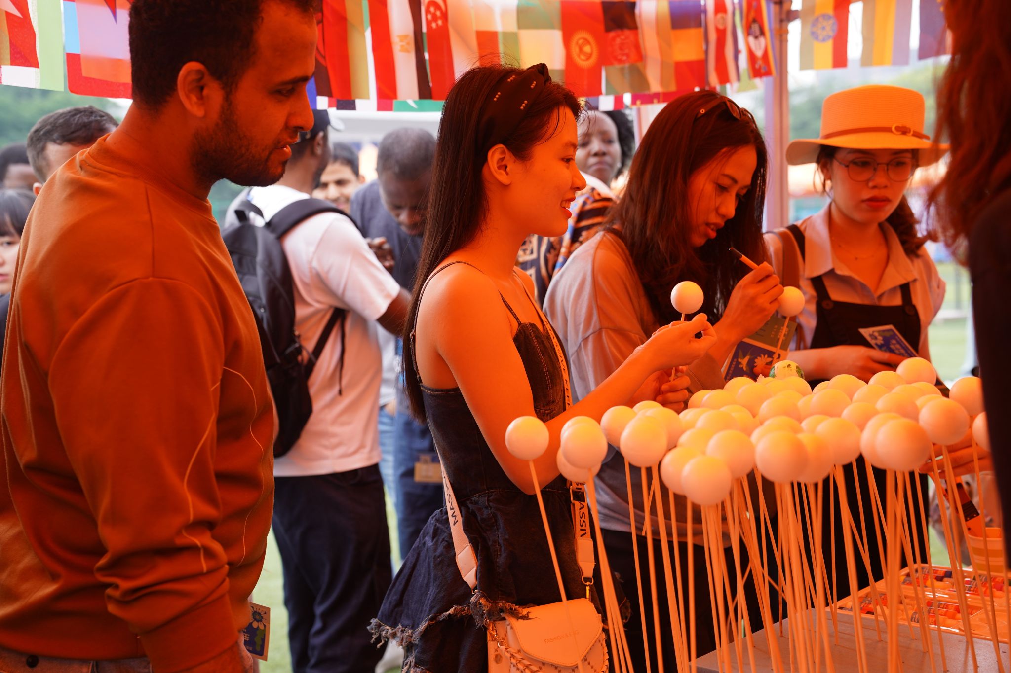 在“同住地球村”活动中,来自世界不同国家的职工们通过不同颜色的画笔不仅绘出了各具特色的盘子,也创造出属于自己的星球,肤色的不同也阻止不了我们的“星际”互动。