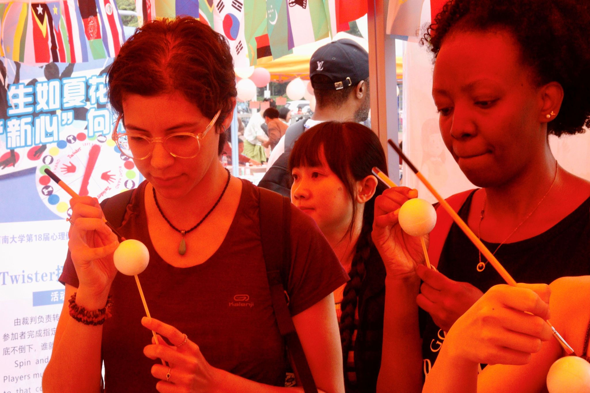 为有效疏解员工负面情绪,引导公司员工树立健康积极的心理状态,5月20日,公司举行第十八届心理健康节“生如夏花,‘新心’向荣”心灵创意集市活动,91个摊位组成巨大“520”,吸引全校师生驻足。永利3044noc积极参与本次“心灵集市”创办,并根据公司特色精心组织设计了3个体验活动——同住地球村、Twister扭扭乐翻天、看见自我的力量,向阳而生(OH卡牌)供公司师生参与体验。