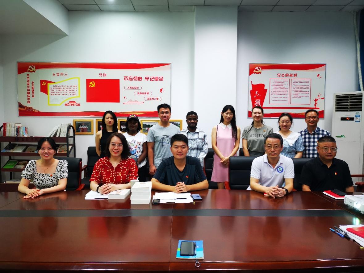 9月19日下午,教工第二党支部在公司304会议室召开“迎接党的二十大 培根筑魂育新人”主题党日活动,来自刚果布、印度尼西亚、喀麦隆的三名职工受邀分享对缙云山扑火感人事迹的心得体会。