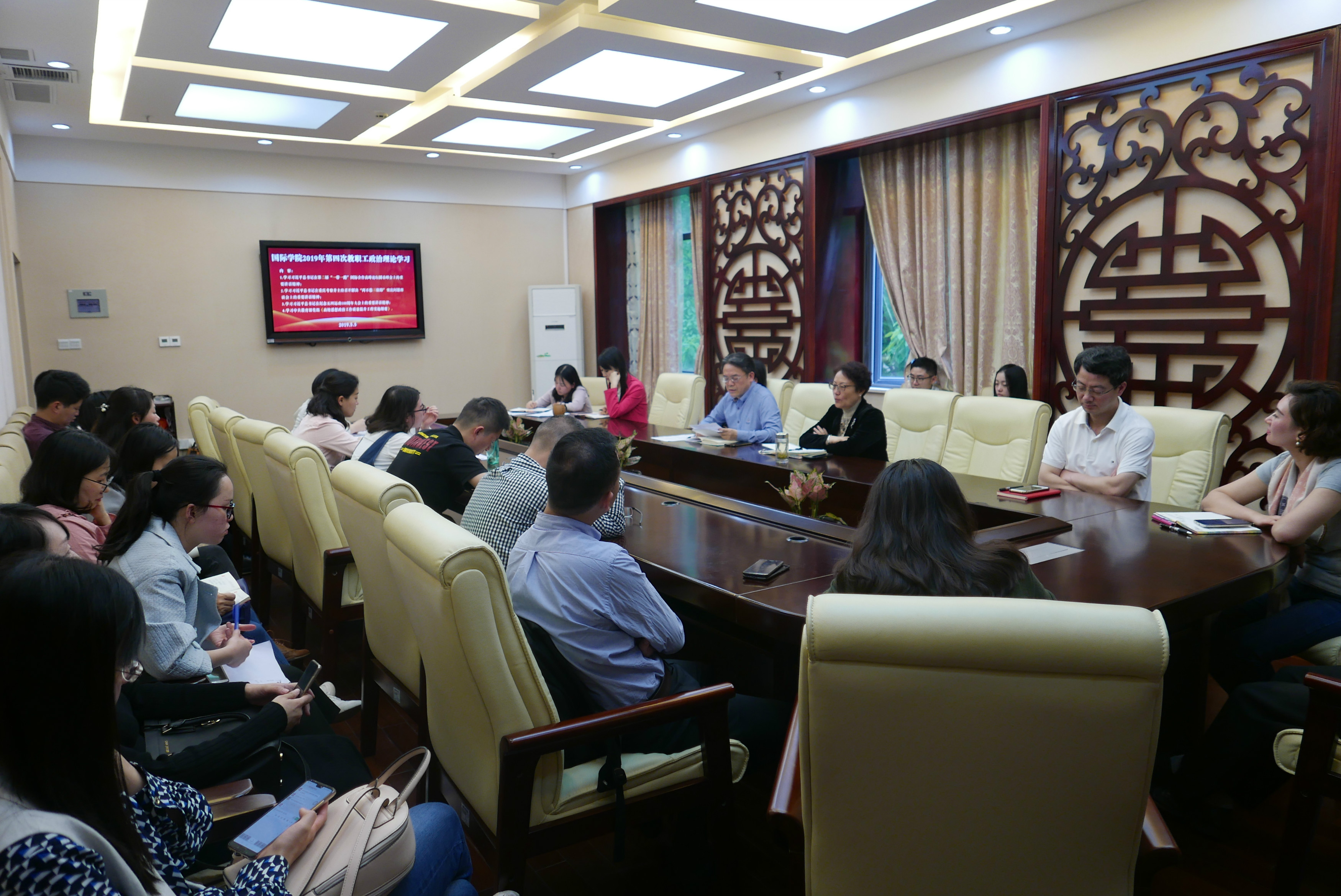 魏丽华同志传达了习近平总书记在第二届“一带一路”国际合作高峰论坛圆桌峰会上的重要讲话精神,并且用视频、图片、文字相结合的方式介绍了“一带一路”国际合作论坛的情况以及“一带一路”建设的成果。王霜同志传达了习近平总书记在重庆考察并主持召开解决“两不愁三保障”突出问题座谈会上的重要讲话精神以及习近平总书记在纪念五四运动100周年大会上的重要讲话精神,并回顾了五四运动后的一百年内中国青年的丰功伟绩。罗昕同志带领大家一同学习中共教育部党组《高校思想政治工作质量提升工程实施纲要》。刘猛书记对学习内容进行了总结性讲话。最后,全体与会人员当堂完成了本次学习内容的小测试。